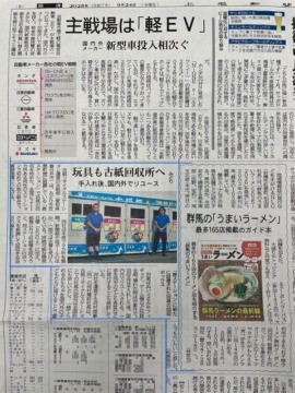 令和7年9月24日の上毛新聞朝刊経済面に、「玩具も古紙回収所へ」のタイトルで、古紙畑鹿ステーション(群馬県みどり市笠懸町鹿4093-2)にておもちゃの回収を始めたニュースが掲載されました。